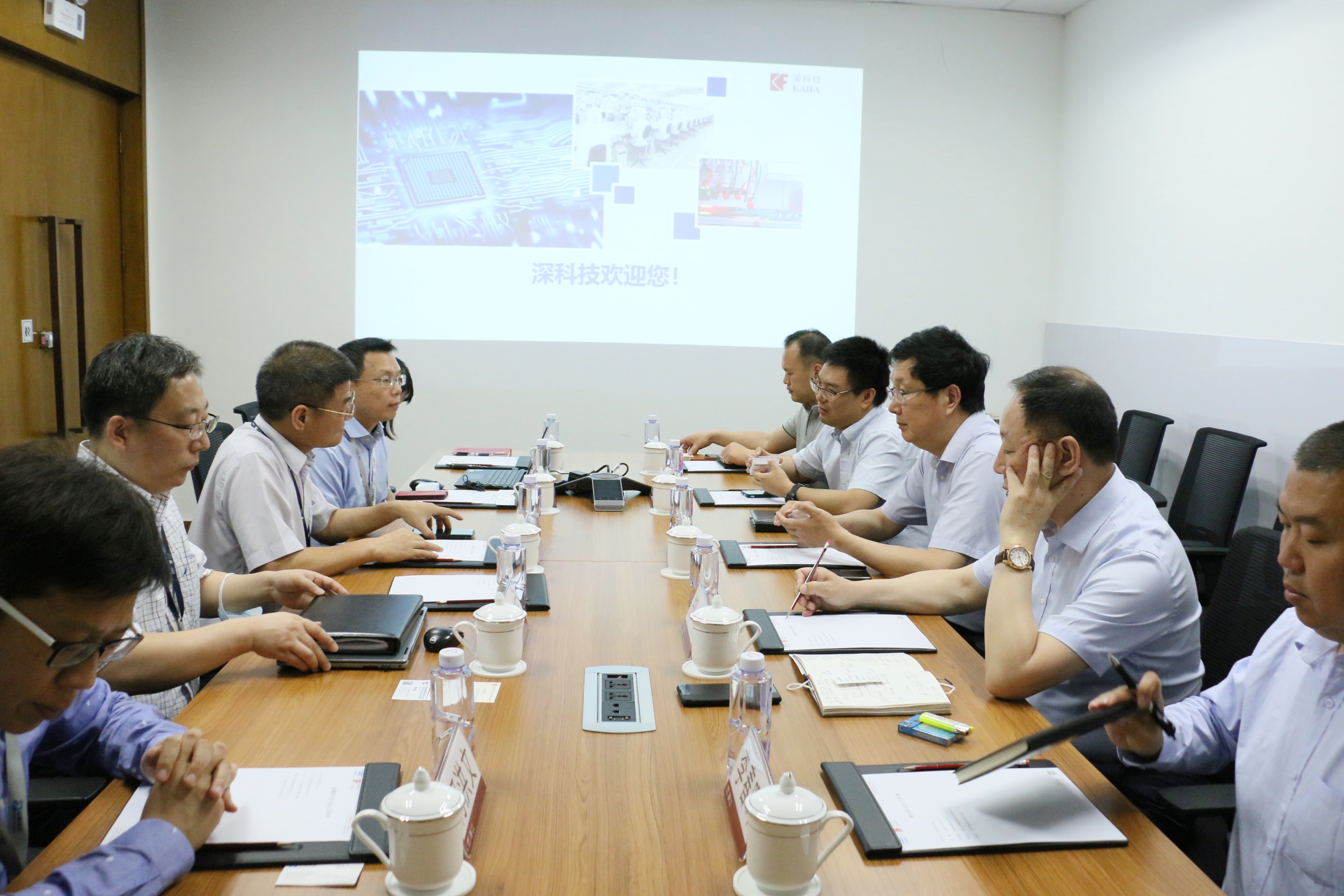 5月8日,江蘇省鹽城經濟技術開發區主任王旭東率隊訪問深科技,簡要了解深科技的基本發展與產業布局情況,深入了解深科技封裝與測試技術及生產狀況。公司高級副總裁周庚申出席接待。